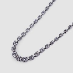 ペンダントトップは菱形の外枠を形成しており、モダンでありながらもクラシックな印象を持っています。中央に大きく鎮座するオーバルカットのルビーの周りには、12個のメレダイヤが輝いており、ペンダント全体に華やかさを加えています。メレダイヤは小さなダイヤモンドですが、その光の反射によって、周囲のルビーの美しさを際立たせる役割を果たしています。