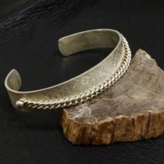 SVのチェーンにダイヤモンドが入ったK18プレートをアクセントにおいた重量感のあるブレスレット。