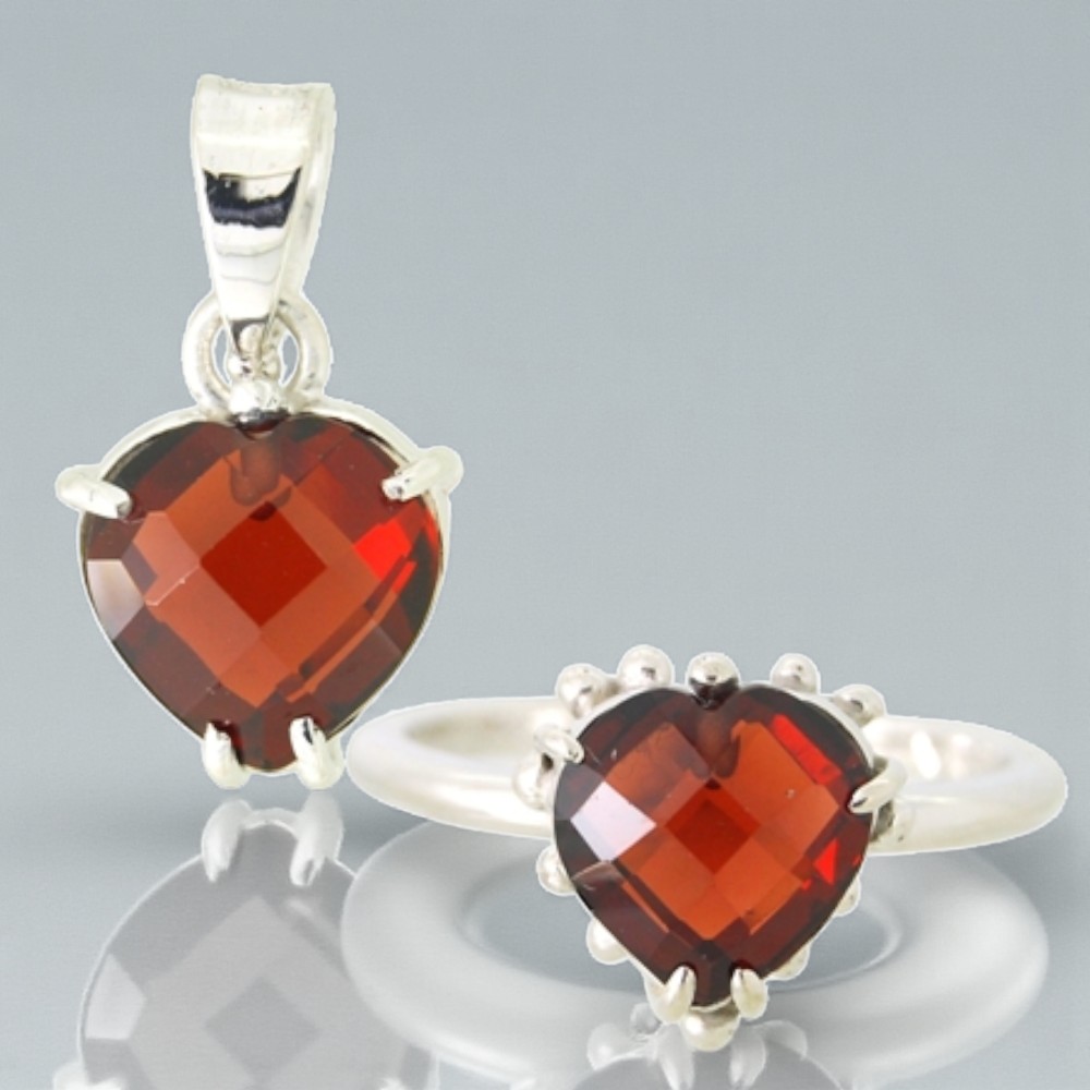 【オーダー例】ハートシェイプガーネットで作る ペンダント&リング(SV925)