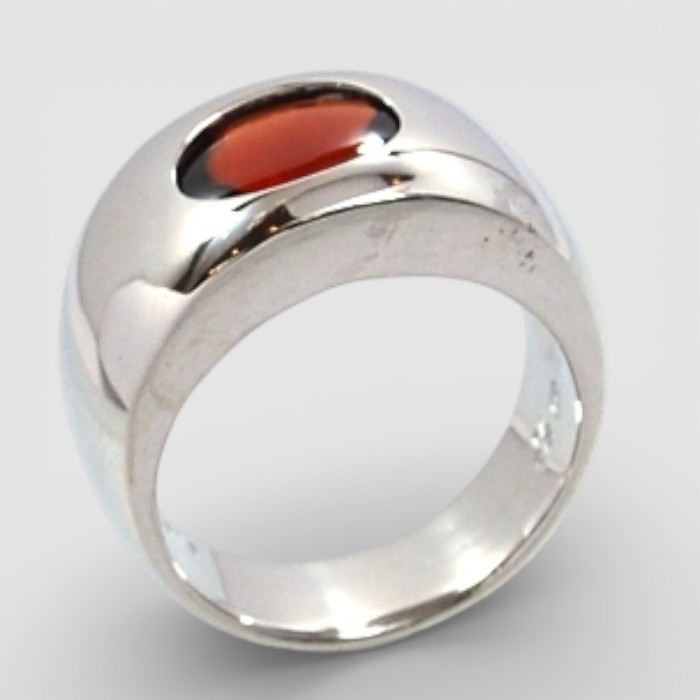O様より「ガーネットを使って、石が上に出過ぎない(引っ掛かりにくい)デザインの指輪にしたい」