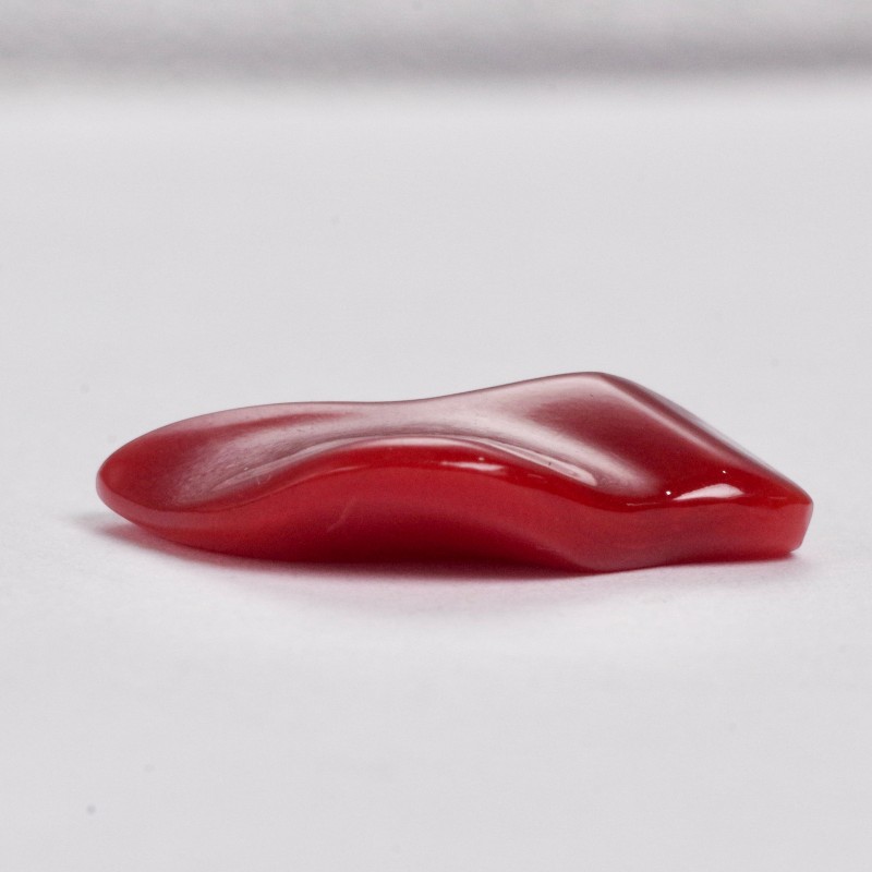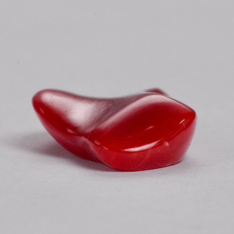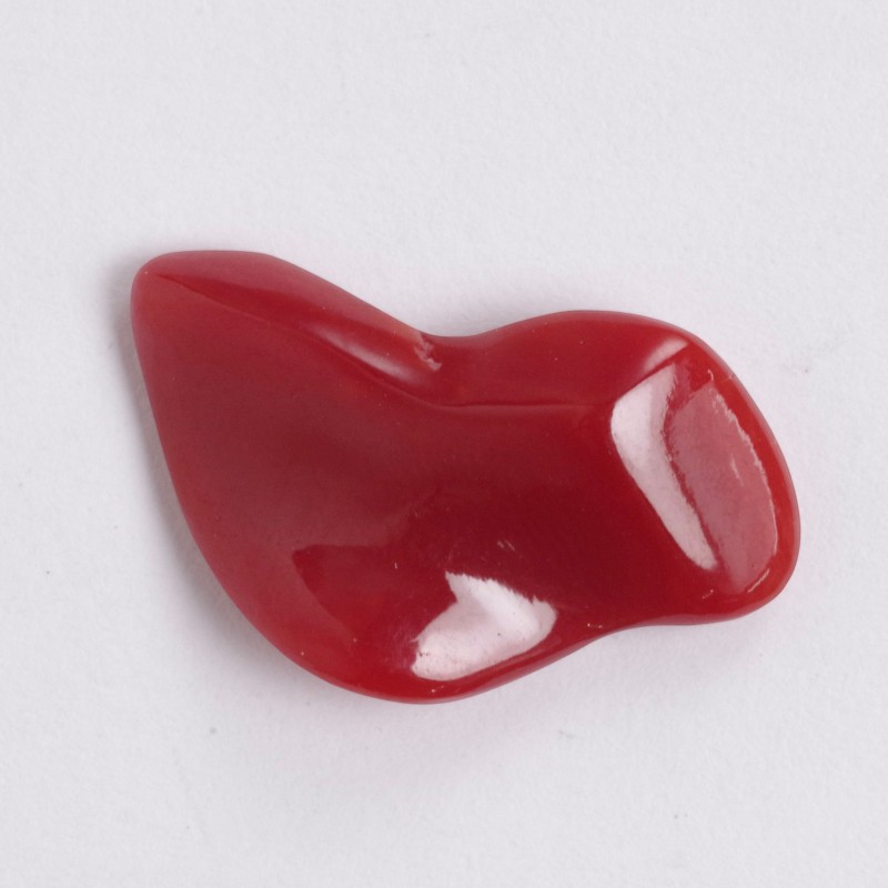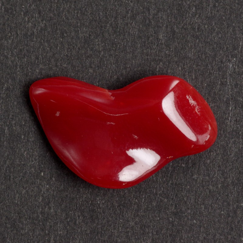 約17mm×約13mm、重さ0.26匁(約1g)の血赤珊瑚のルースです。艶やかな美しい照りと、深みのある赤色が魅力です。