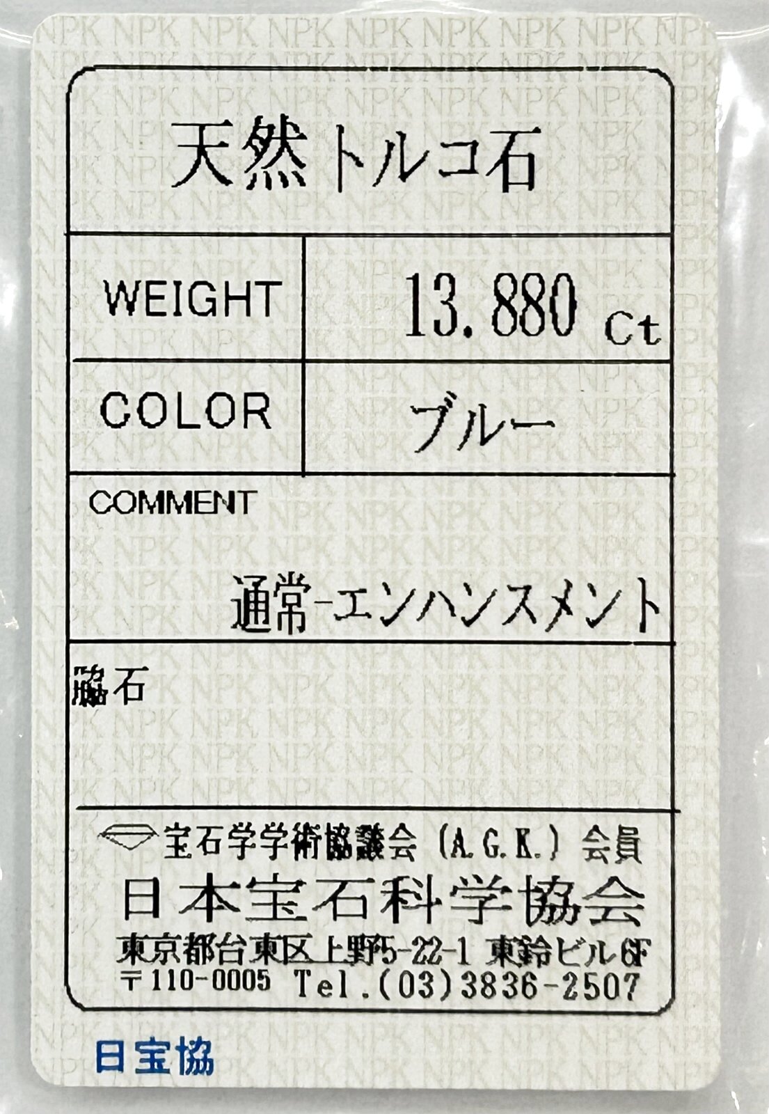 - > 【ソーティング付き】ターコイズ 13.880ct 約20×15mm