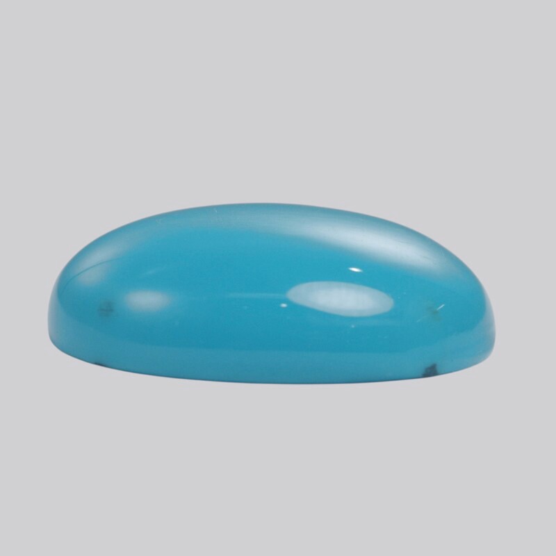 13.880ctという圧倒的なボリュームを誇る、天然ターコイズ(トルコ石)のルースです。約20×15mmの堂々としたサイズ感に加え、厚みも約6.4mmとしっかりしており、ふっくらとした美しいオーバルカボションのフォルムが目を引きます。