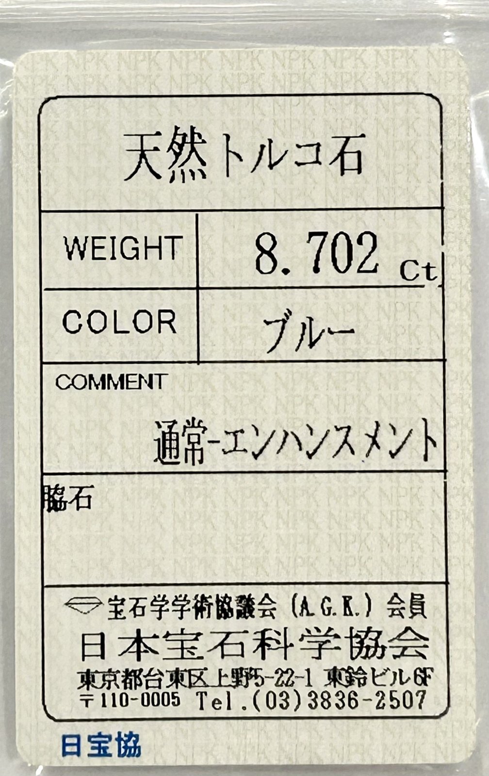 - 付属品: ソーティングメモ(日本宝石科学協会発行)