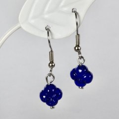 濃い瑠璃色が美しい、高品質なラピスラズリが採れるアフガニスタン産を使用しております。間に入れた金のボールと金具はK18。