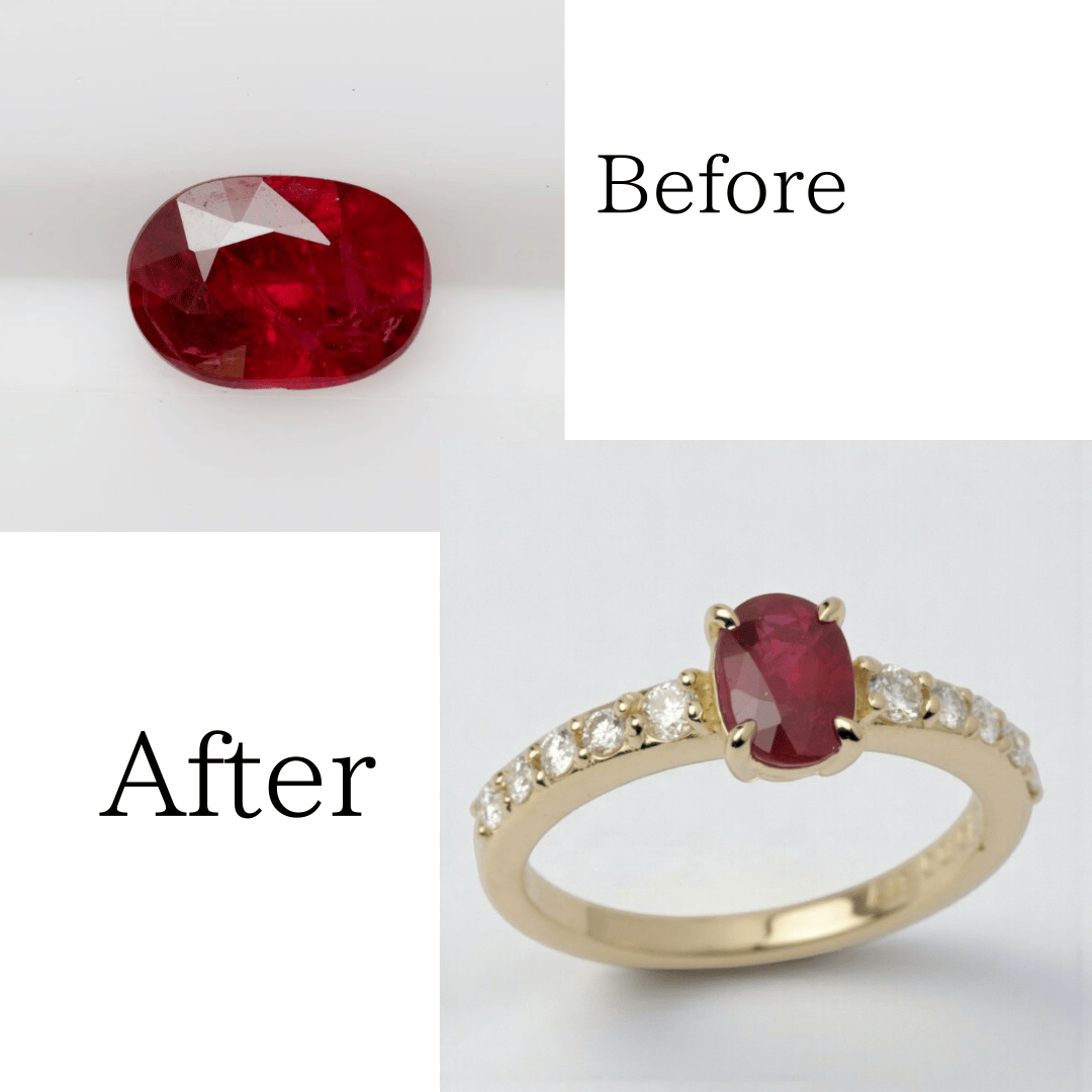 Bellmaxでお選びいただいたルビーと、お持ちのジュエリーから外したダイヤモンドを使って、