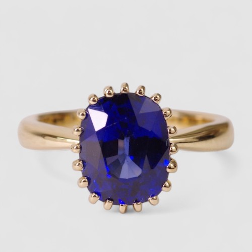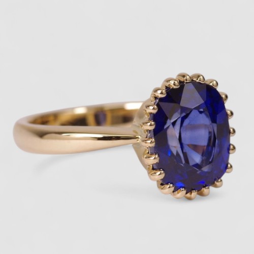 深いロイヤルブルーと存在感のあるサイズを生かすため、周りにダイヤなどはあえて入れず、 サファイア一石が主役になるデザインをご提案しました。
