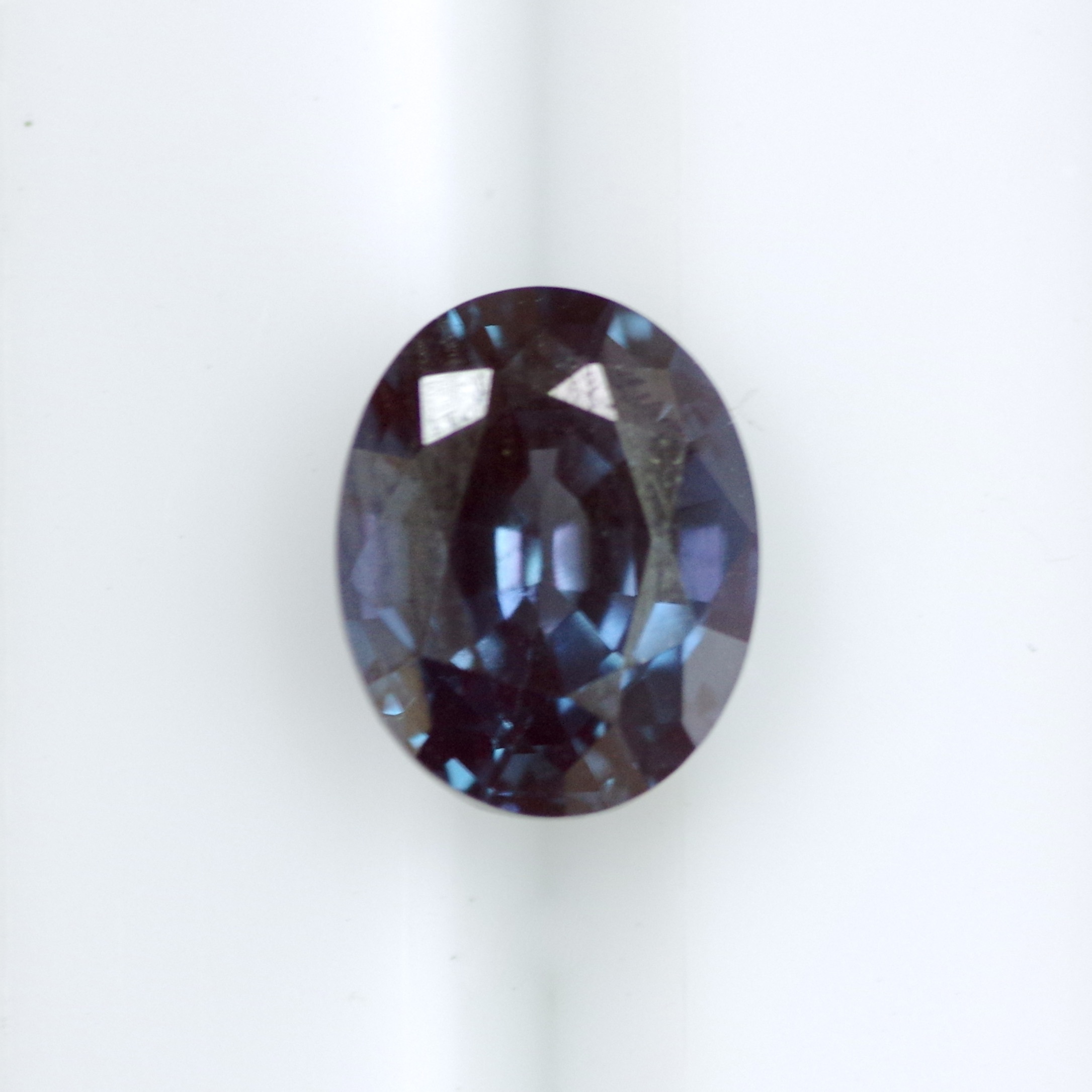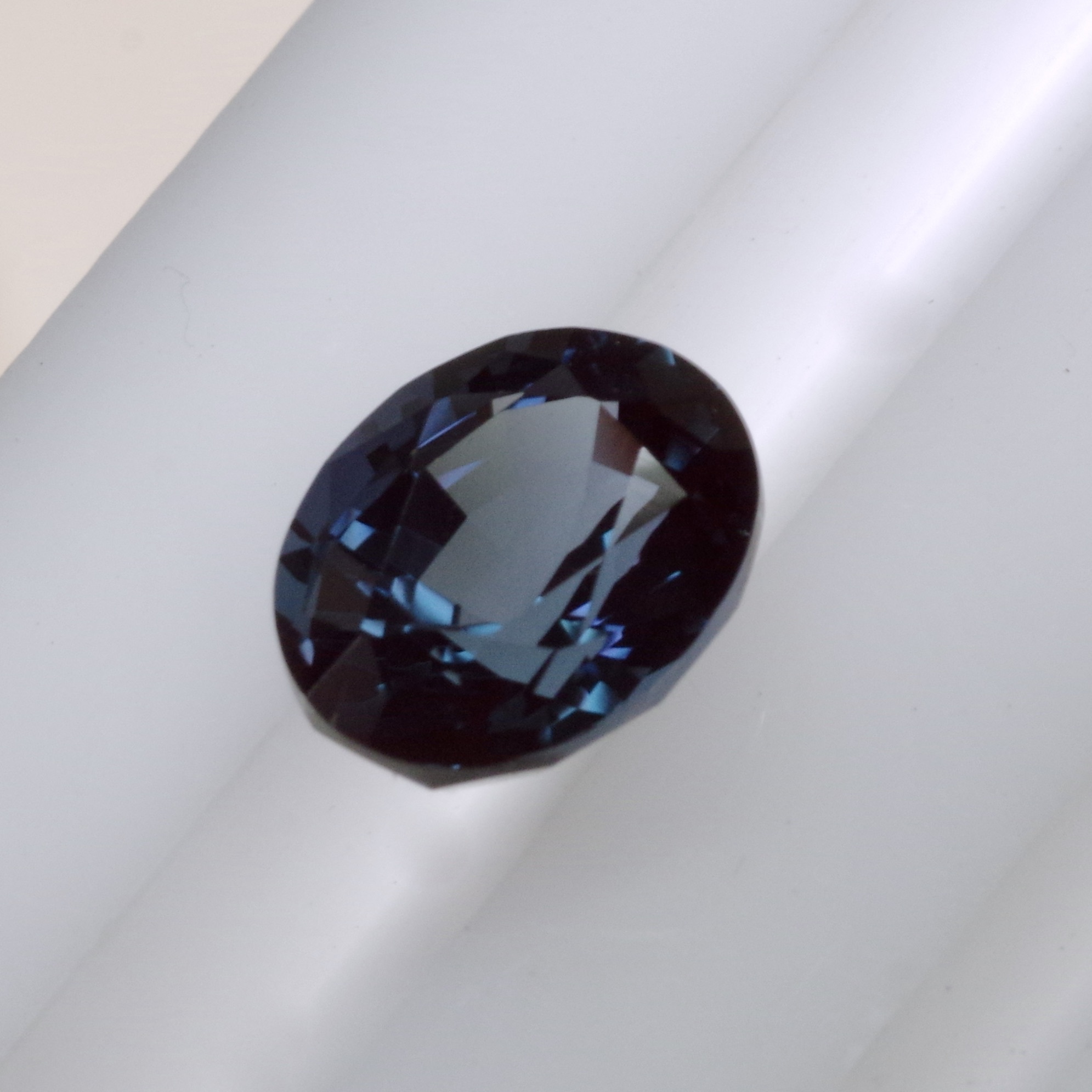 アレキサンドライト再結晶(人工)ルース 3.64ct。約10×8mmの大粒オーバルで、存在感のあるジュエリーにおすすめです。 人工石ならではの価格で、3ct以上のサイズ感を気軽に楽しめます。