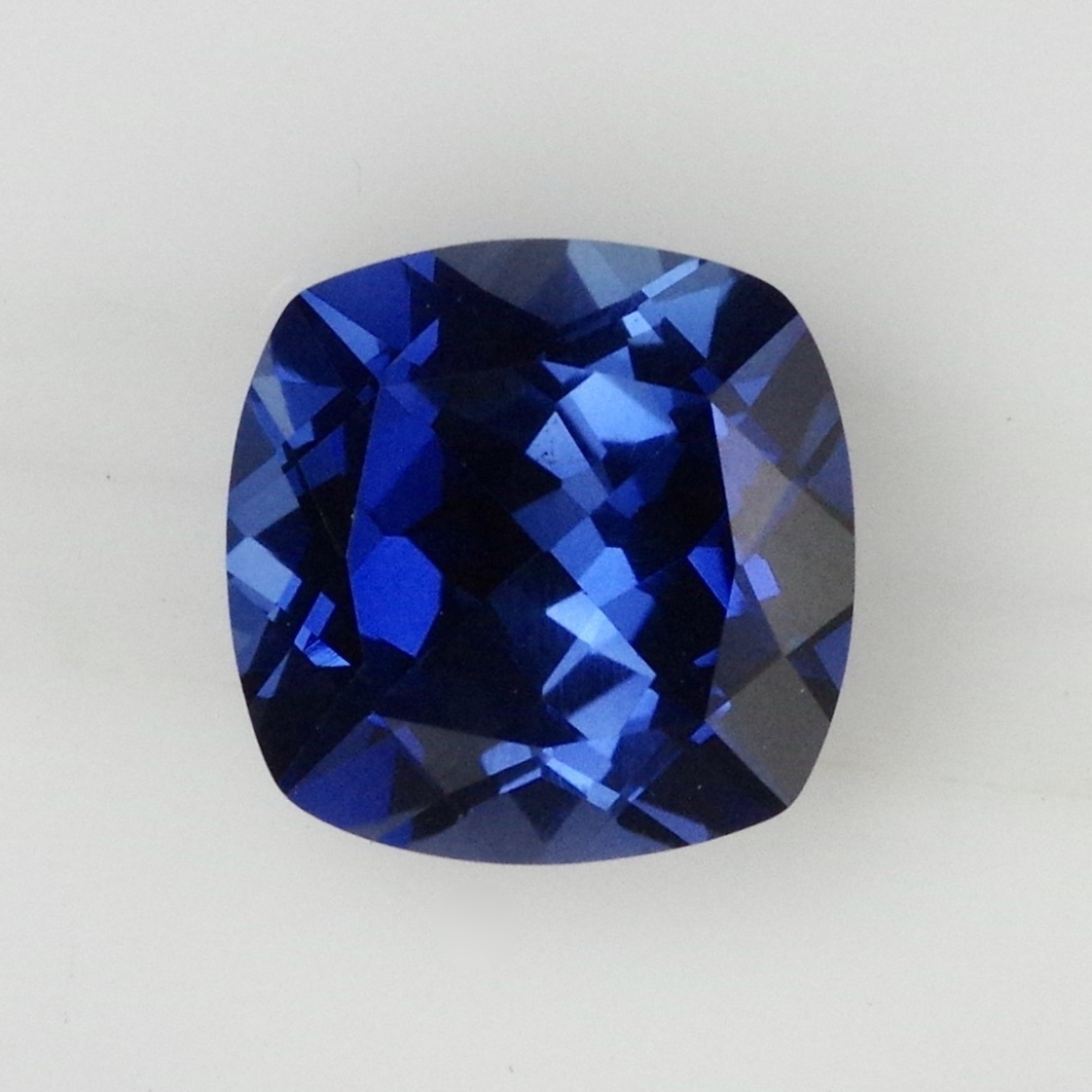 サファイア再結晶(人工石)ルース 4.152ct。約8.9〜9mm角のスクエア(クッション系)シェイプで、 深みのある鮮やかなブルーが際立つ一石です。
