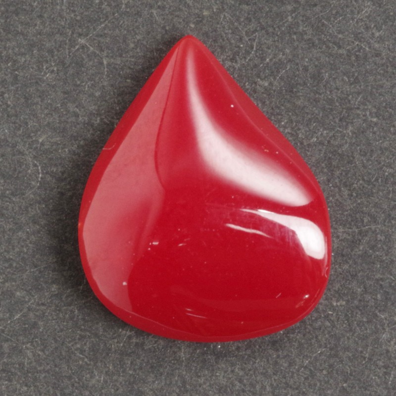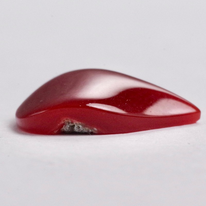 約18.7mm×約11mm、重さ0.21匁(約0.8g)のハイクラスな血赤珊瑚ルースです。当ラインナップの中でもひときわ赤が濃く、吸い込まれるような深い色合いと極上の照りを誇る特別な逸品です。