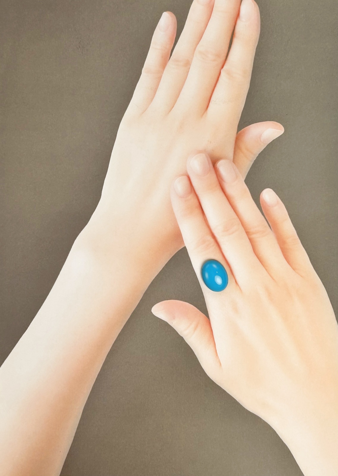13.880ctという圧倒的なボリュームを誇る、天然ターコイズ(トルコ石)のルースです。約20×15mmの堂々としたサイズ感に加え、厚みも約6.4mmとしっかりしており、ふっくらとした美しいオーバルカボションのフォルムが目を引きます。